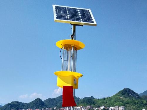 二、 太陽能殺蟲燈安裝高度,可以結合兩方面因素考慮。一是太陽能殺蟲燈控制區內種植蔬菜作物及誘殺蟲害種類情況,如以葉菜類作物為主的,安裝高度可適當低一些,可以在誘殺飛翔能力強的夜蛾類蟲害的同時,兼顧到小體型、飛翔能力小的蟲害,同時也不影響每燈可控制面積,二是根據蔬菜種植區的設施情況適當掌握,減少頻振式太陽能殺蟲燈光線的控制障礙。